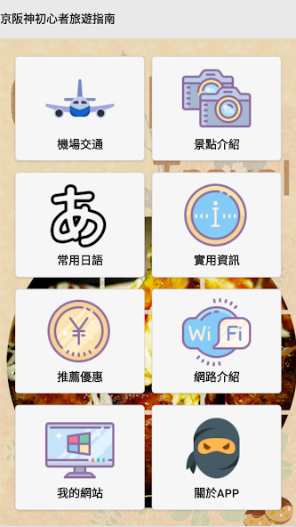 Este é o Osakago, que fornece informações sobre o transporte das atrações Osaka, Kyoto e Kobe. (O GPS está disponível para passeios turísticos.) Japonês comum (clique para pronunciar a pronúncia), informações práticas (incluindo cálculo da taxa de câmbio, itens quentes, medicamentos comprados frequentemente, investigação de rota, consultas climáticas etc.), ofertas recomendadas e informações sem fio gratuitas da Internet.